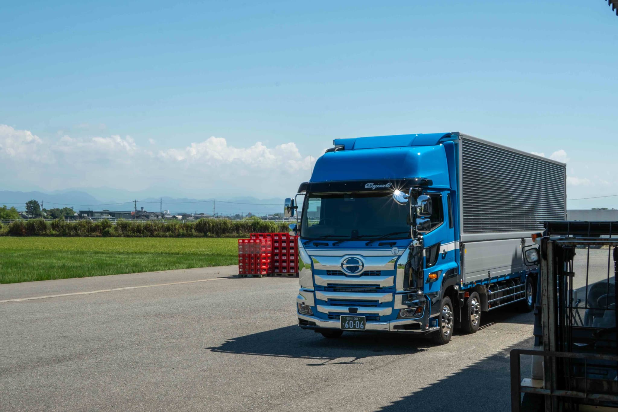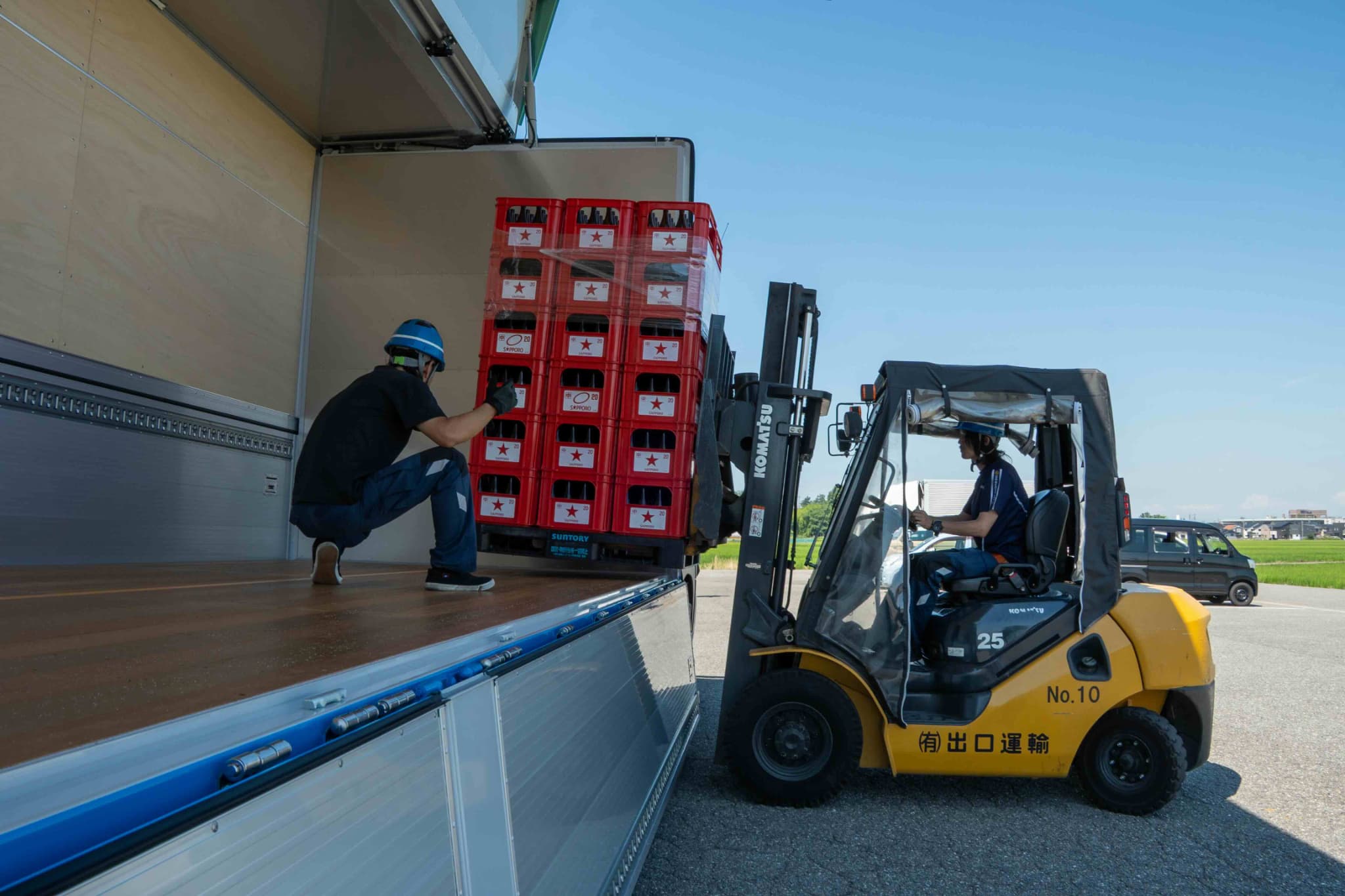 荷下ろし現場ではフォークリフトを使い、